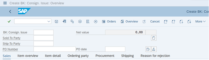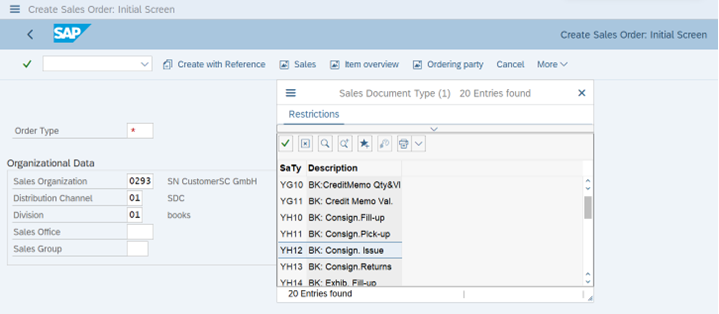 Transaction: VA01, choose YH12 (BK: Consign. Issue)