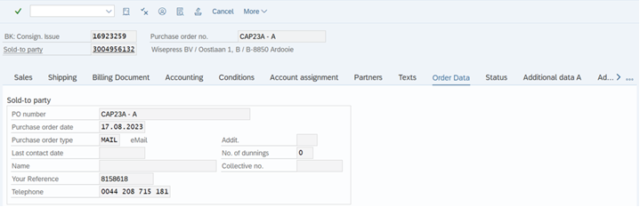 Still in the header, select the tab “Order Data”