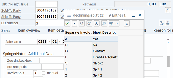 Now scroll down on the “Sales” tab and if it’s not already selected so, choose J (yes) on the InvoiceSplit field.