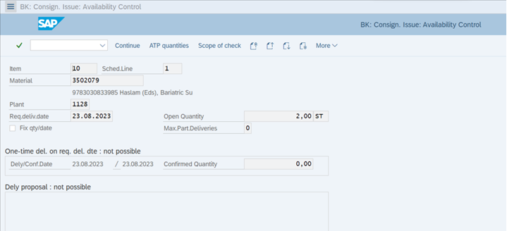 This procedure is very important, because if the quantity of the ISBN’s order line isn’t available (meaning that there’s enough stock booked on the Consignment account), an invoicing of this order line is either not possible at all or only a partial invoicing will be done.