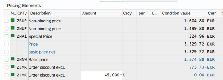 Here we’ll add the order discount (ZJMR). But firstly, we must know how much: