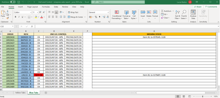 If everything goes well, this action will populate the column “ATP Qty” with the stock levels available for this consignment account in the system. Check line by line comparing the column “Order Quantity” with it and make sure the value is equal or lower than the quantity in the column “ATP Qty”. If everything’s correct, proceed to the last step of removing the order blocks.
