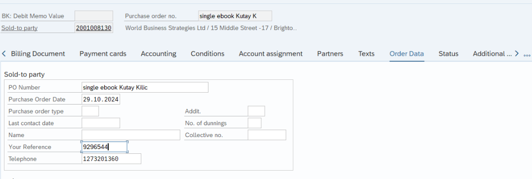 Please enter Sold-to Party and ebook ISBN and if known add endcustomer name to Purch. Order No.